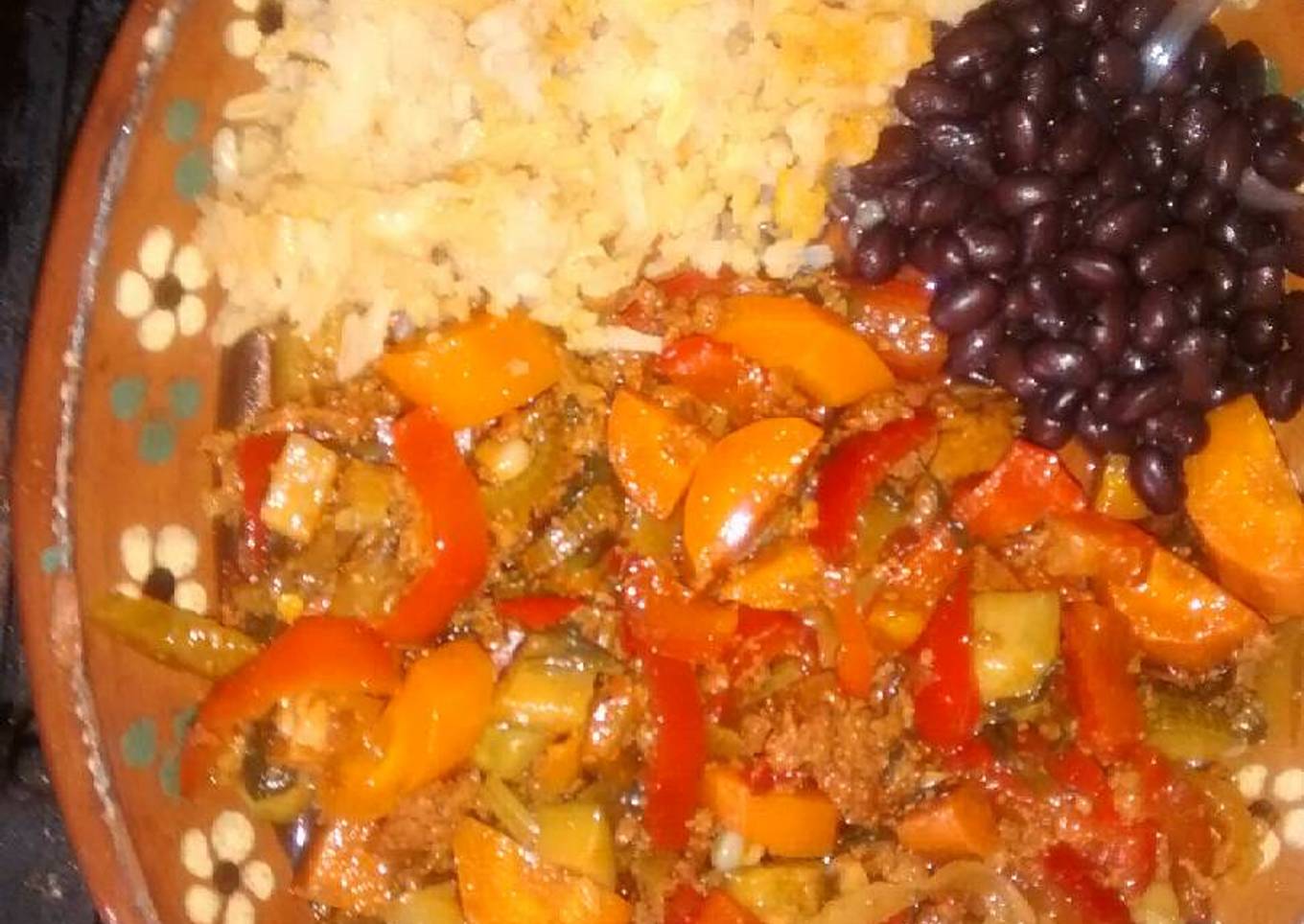- Agrega todos los vegetales juntos y mezclarlos con el chorizo y la cebolla y el ajo.