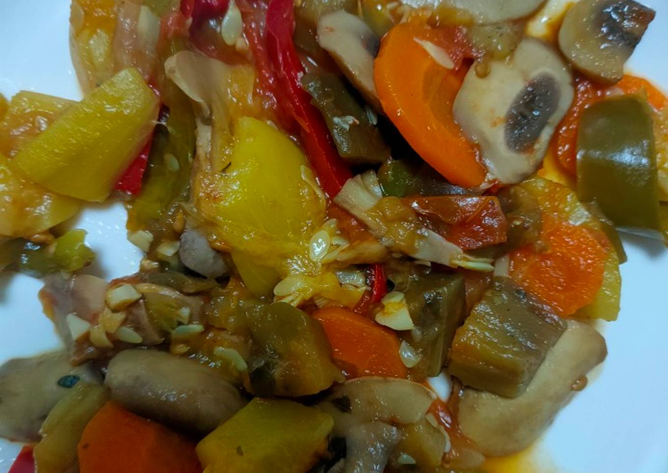 So that's going to wrap it up for this special food Steps to Prepare Any-night-of-the-week Champiñones con verduras 🍄🍅🧅🌶️🫑🧄🍆🥕. Thanks so much for reading. I am sure that you will make this at home. There is gonna be more interesting food in home recipes coming up. Don't forget to bookmark this page on your browser, and share it to your family, colleague and friends. Thanks again for reading. Go on get cooking!