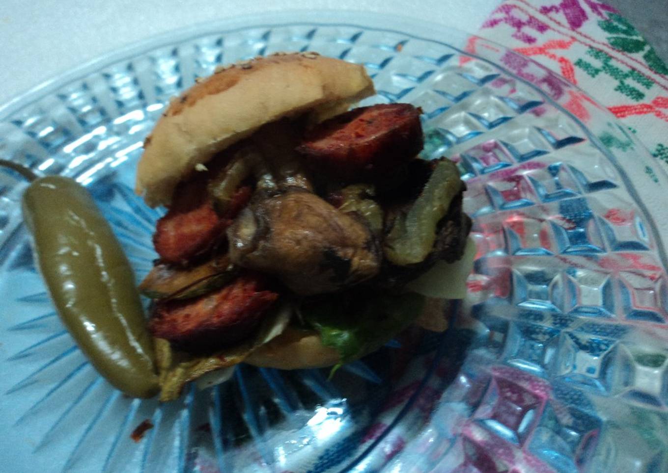 Mini hamburguesa de chorizo con hongos a la mexicana