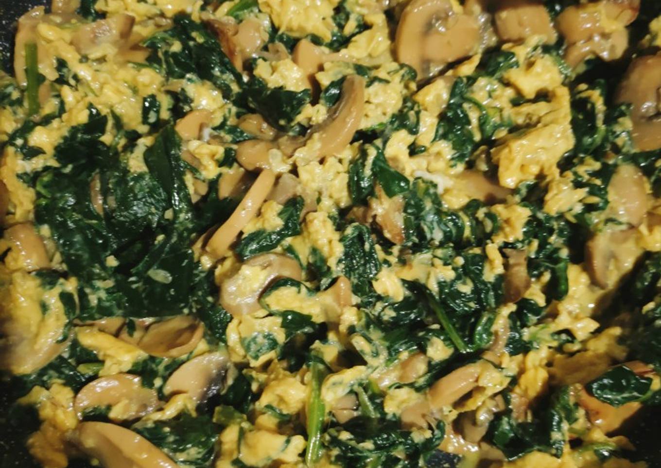 Hey everyone, I hope you're having an amazing day today. Today, I will show you a way to make a distinctive dish, Revuelto de champiñones y espinacas"huerta". One of my favorites. For mine, I'm gonna make it a bit unique. This is gonna smell and look delicious.
