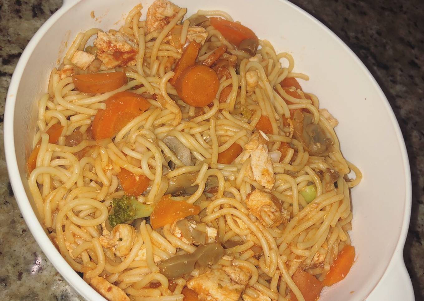 So that is going to wrap it up for this exceptional food Recipe of Any-night-of-the-week Spaghetti de pollo en salsa de tomate y verduras. Thank you very much for your time. I'm confident that you can make this at home. There's gonna be more interesting food in home recipes coming up. Remember to bookmark this page on your browser, and share it to your loved ones, colleague and friends. Thanks again for reading. Go on get cooking!