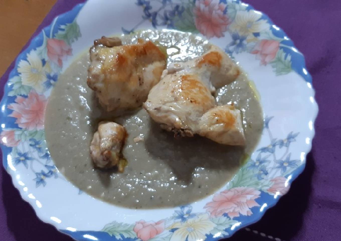 - Emplatamos poniendo la crema primero y los trozos de pollo encima. ¡Estaba buenísimo!