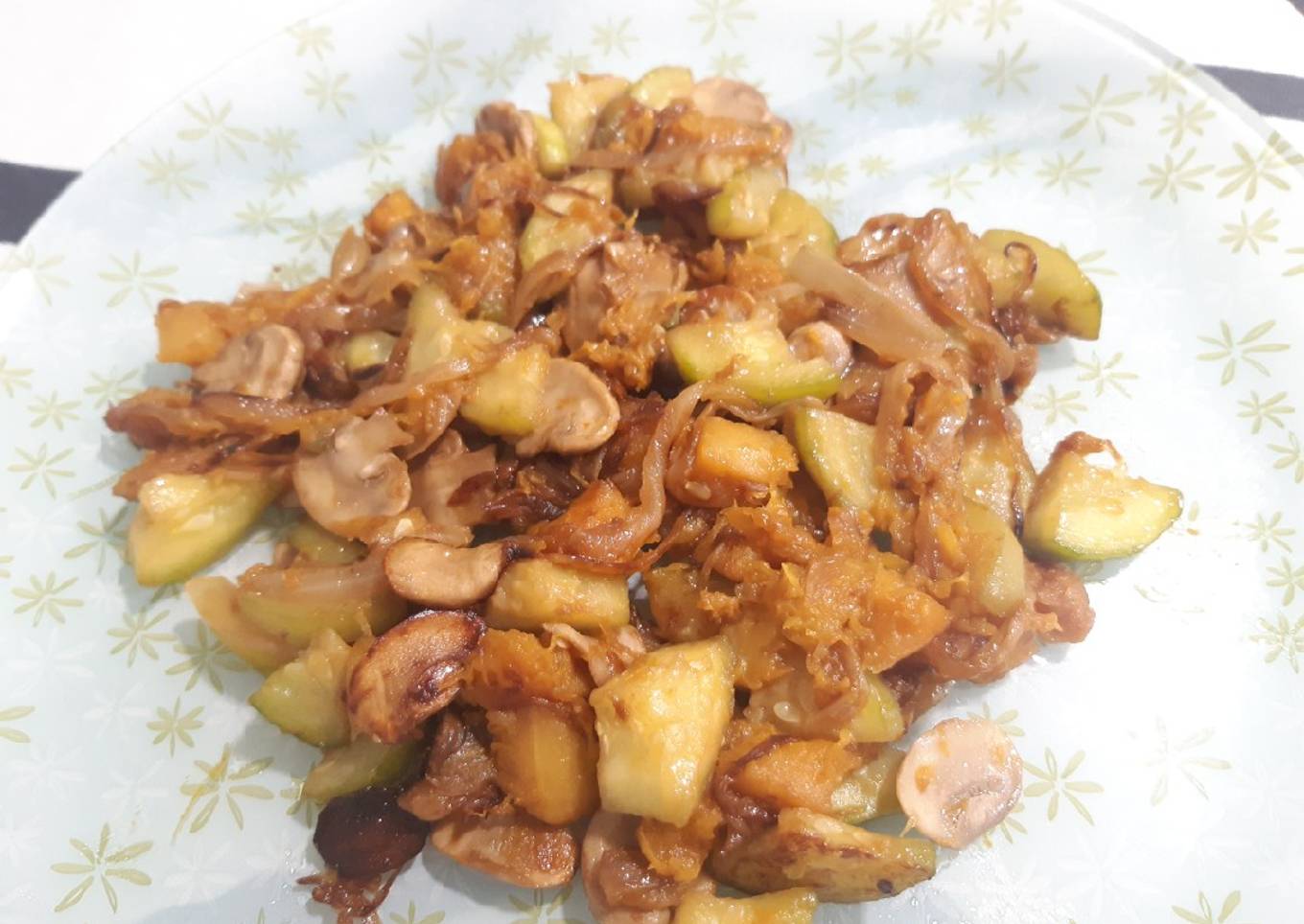 Salteado de cebolla, calabacín, champiñones y calabaza 🎃
