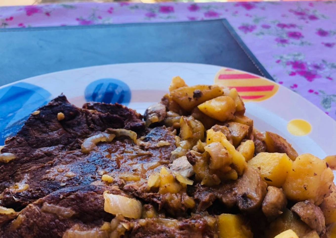 Bifes a la cacerola con papas y champiñón