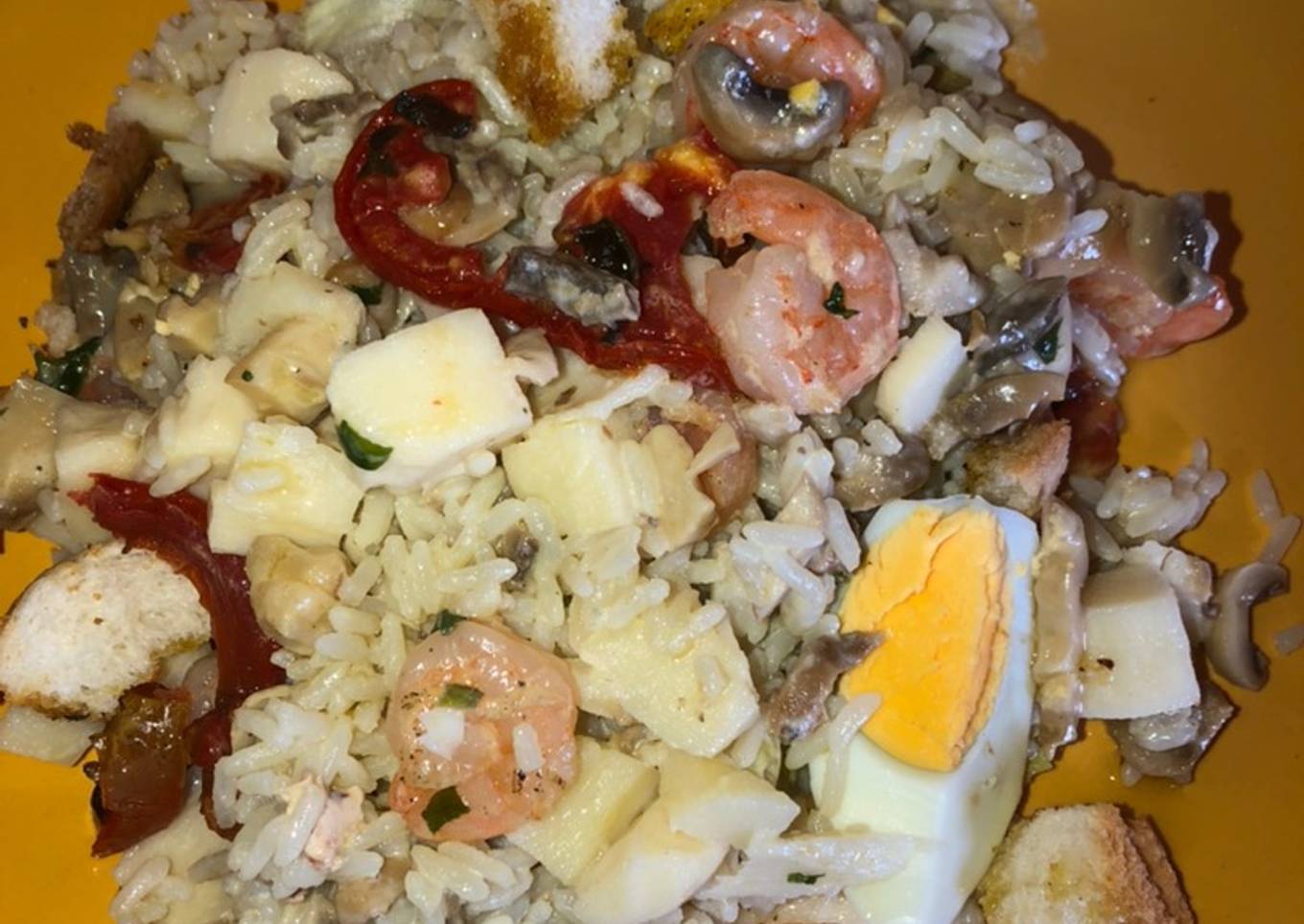 Ensalada tibia de arroz, camarones y champiñones!!👌👌