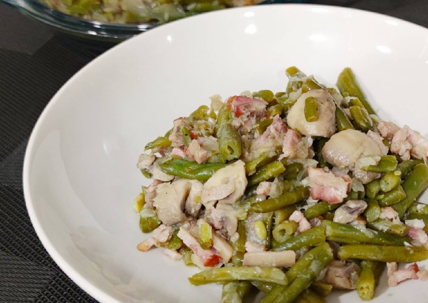Judías verdes con champiñones y beicon