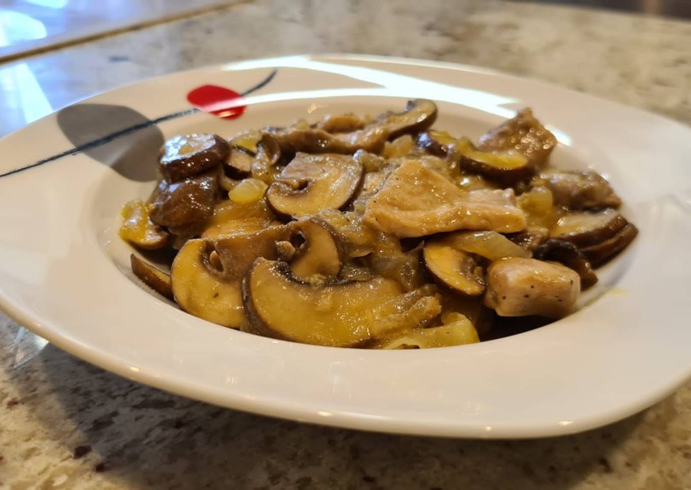 Lomo encebollado con champiñones